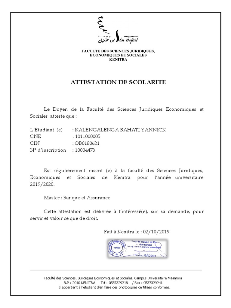En foi de quoi la présente attestation est délivrée pour servir et valoir ce que de droit. Fait pour servir et valoir ce que de droit. Au capital de f cfa n lomé n identification fisc m livre 3.